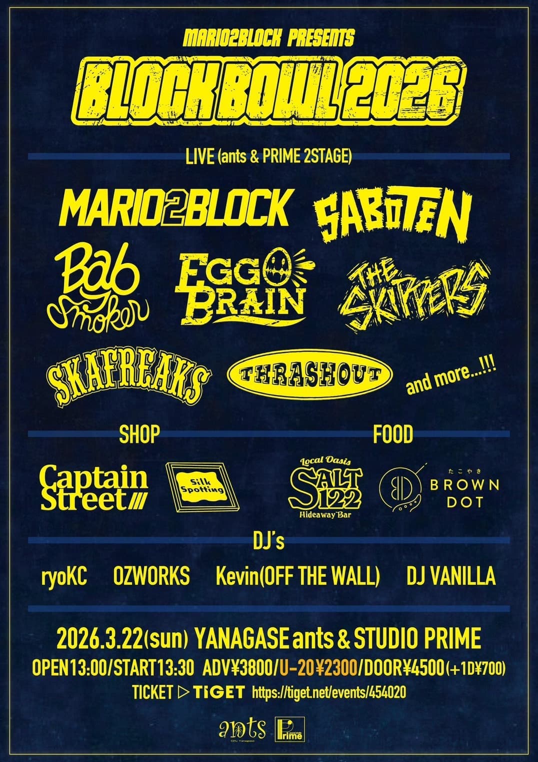 【前売】¥3,800/20歳以下 ¥2,300【当日】¥4,500(入場時別途ドリンク代必要)