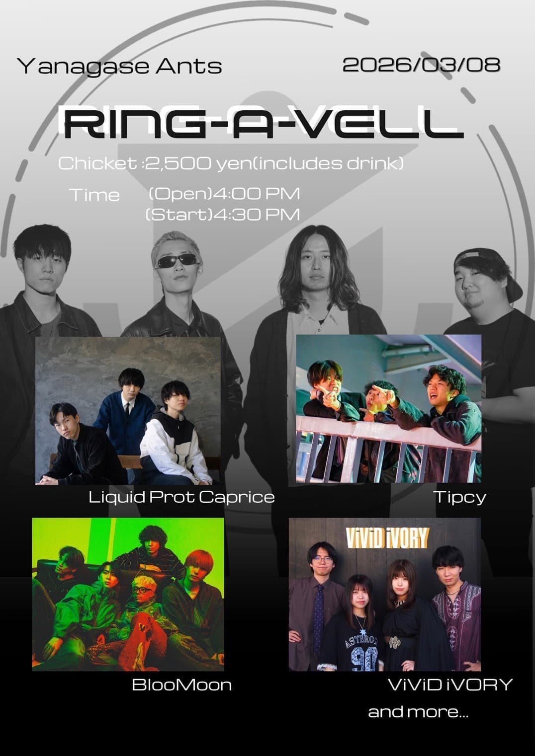 【前売】¥4,000【当日】¥5,000(入場時別途ドリンク代必要)
