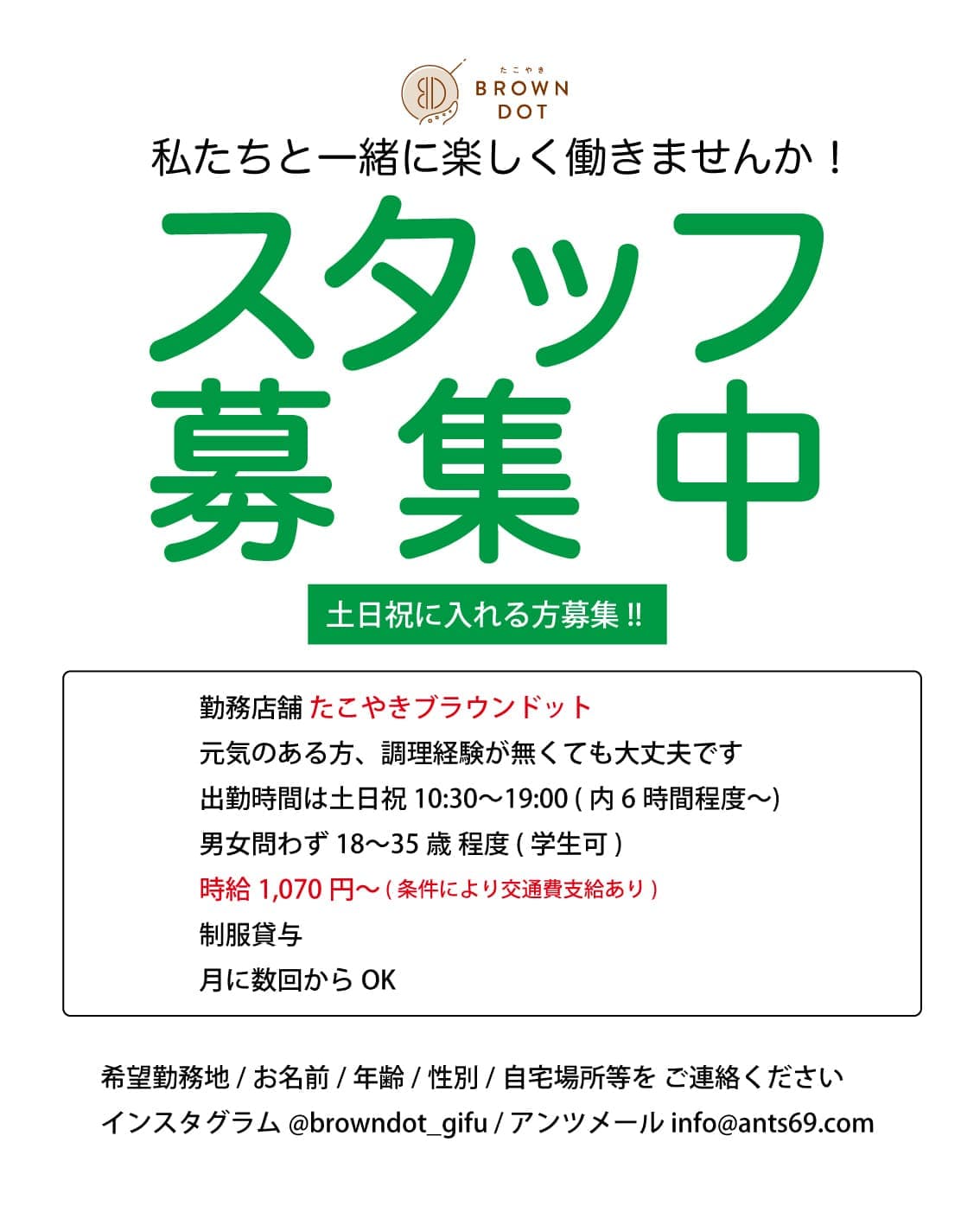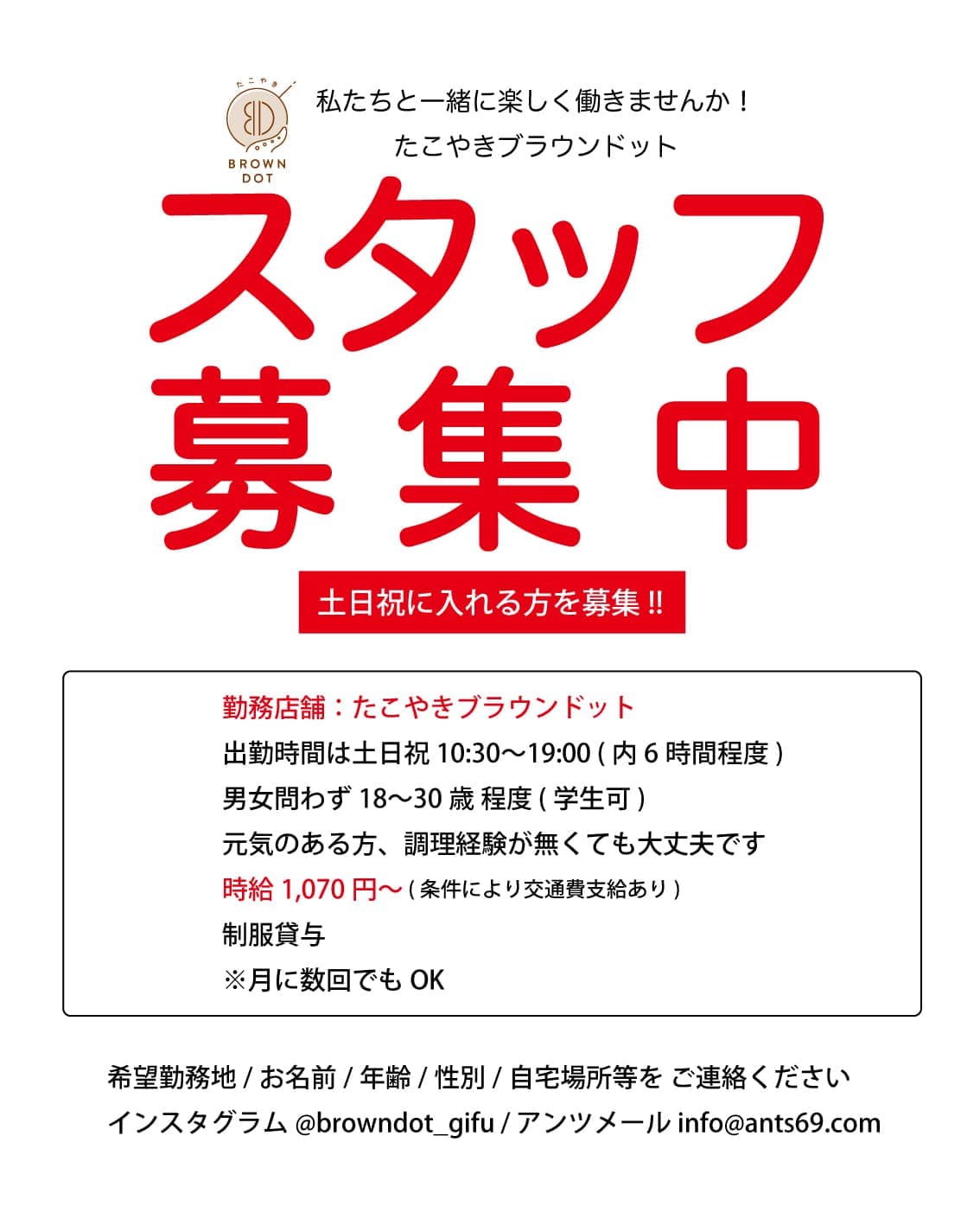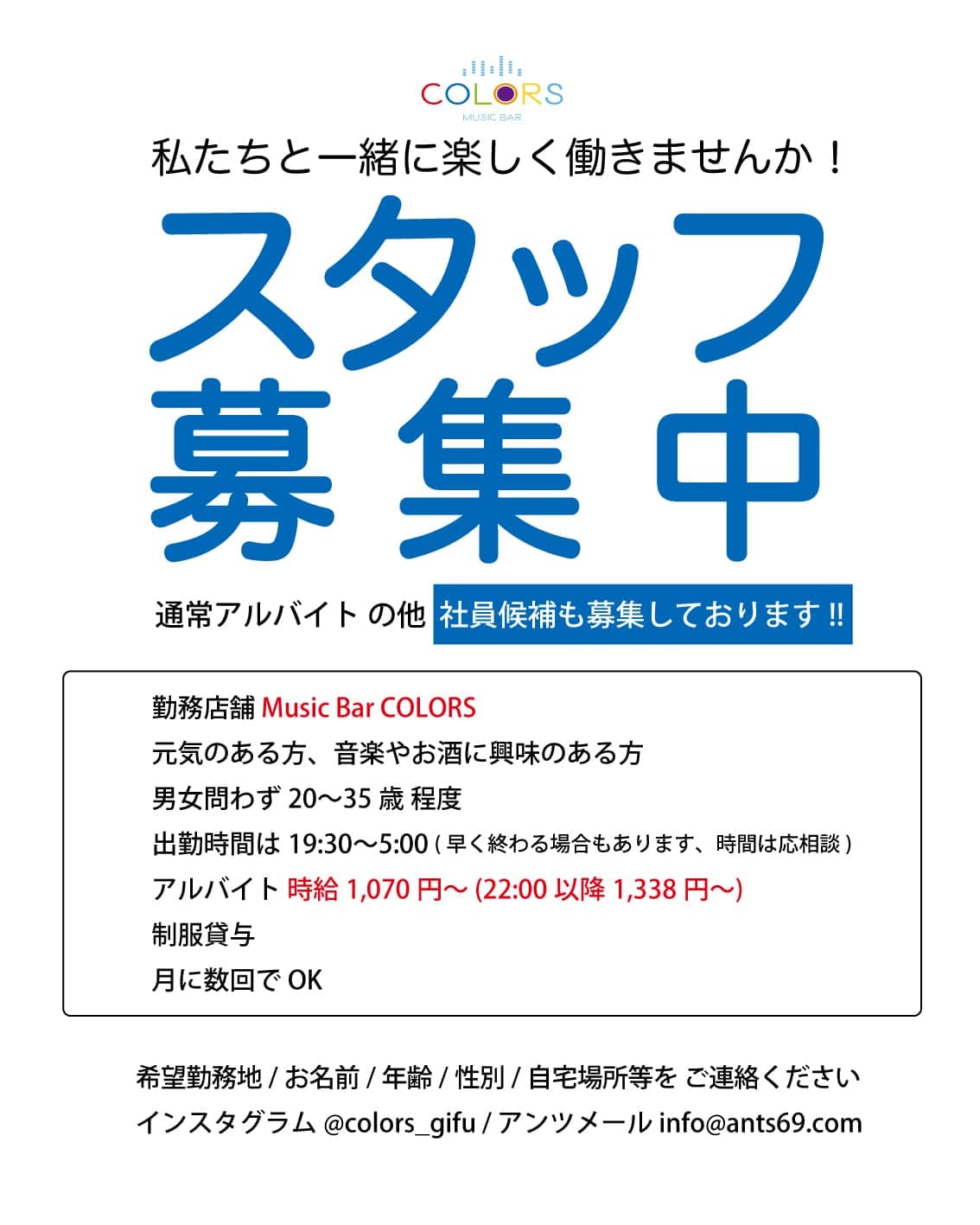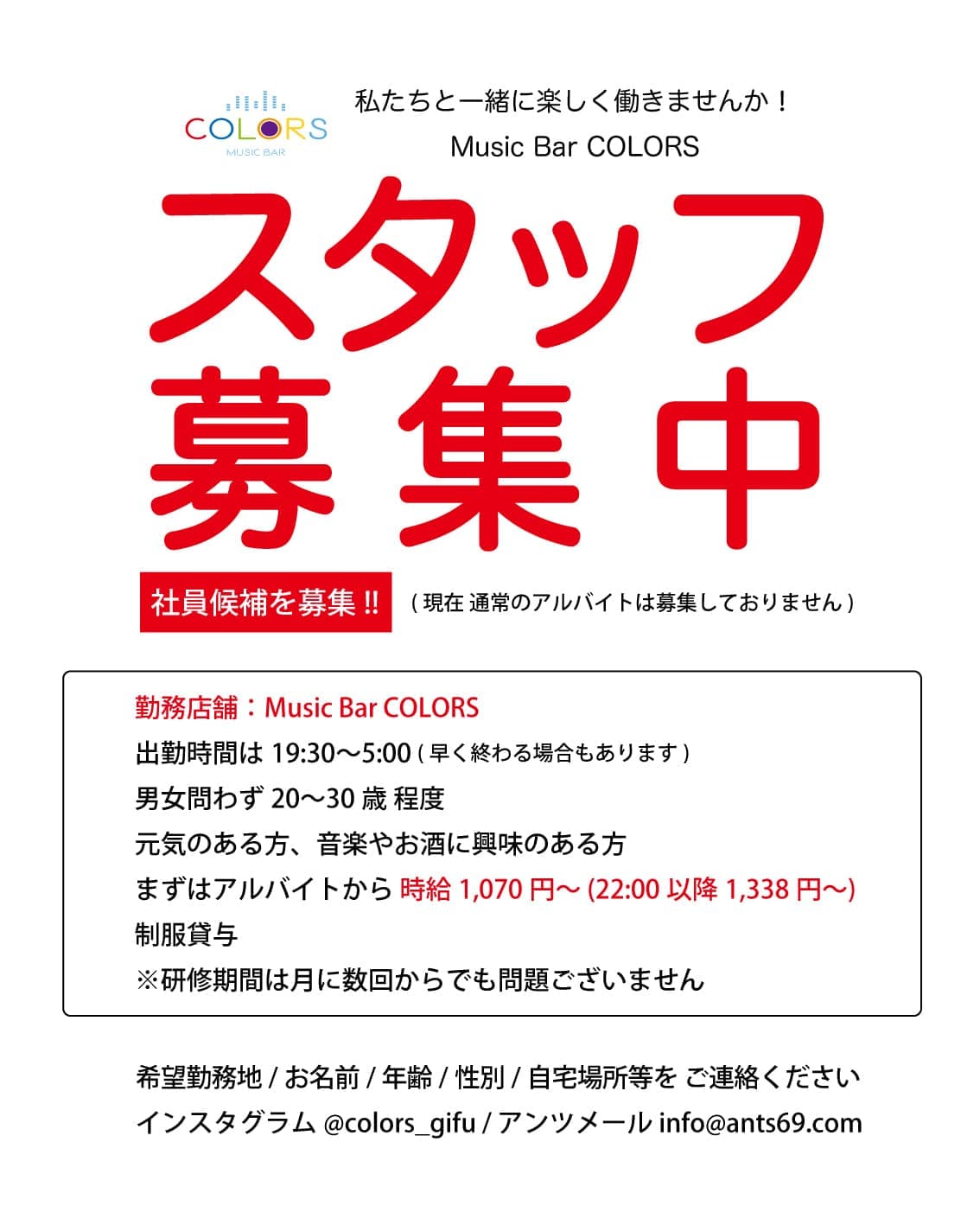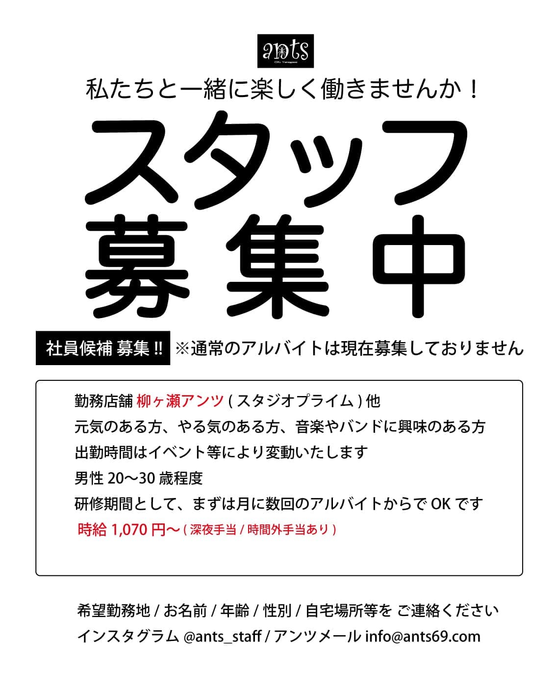 スタッフ募集 (アンツグループ4店舗) 私たちと一緒に楽しく働きませんか!!
