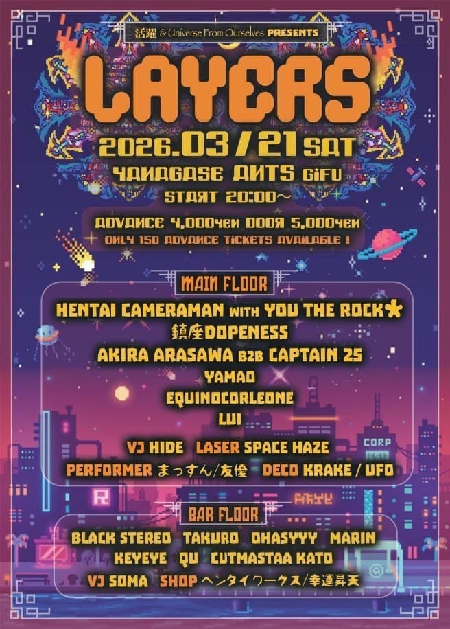 【前売】¥4,000【当日】¥5,000(入場時別途ドリンク代必要)